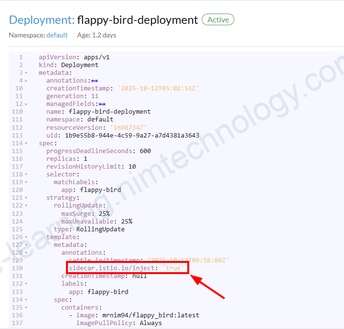 Tiếp đến bạn add annotation vào deployment phần spec.template.metadata.annotations của file YAML.như hình: