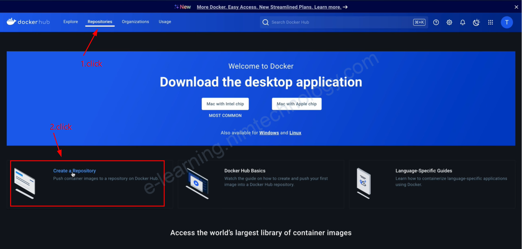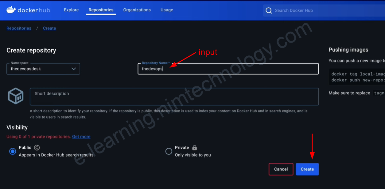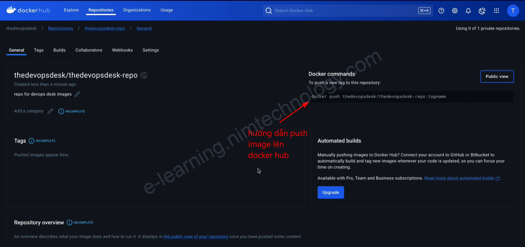 Họ cũng hướng dẫn chúng ta push docker image dưới local lên docker hub bằng command.