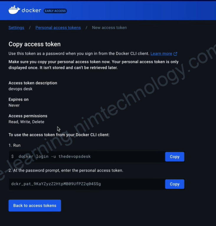 Nó cũng sẽ hiện command hướng dẫn chúng ta login docker hub bằng docker command.